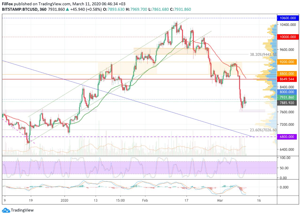 📌 Анализ криптовалютных пар BTC/USD, ETH/USD и XRP/USD на 12.03.2020