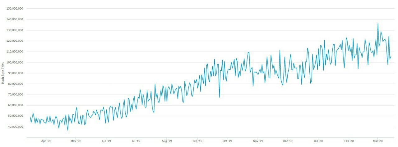 Текущий уровень прибыльности является самым низким из когда-либо зарегистрированных, потому что рыночная стоимость BTC резко и очень быстро упала, а хешрейт значительно вырос. В начале марта хэшрейт достиг своего пика и с тех пор упал до 97,9 EH/s, потеряв 30%.