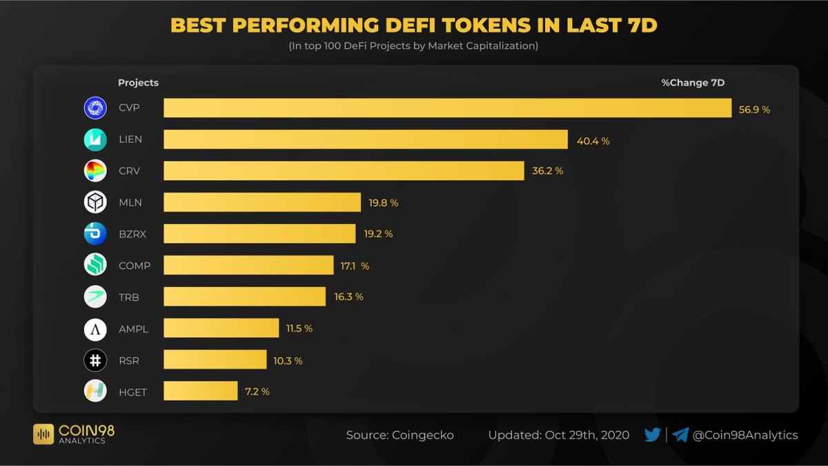 А ниже вы можете увидеть инфографику лучших DeFi токенов за последние 7 дней🚀⤵️⤵️