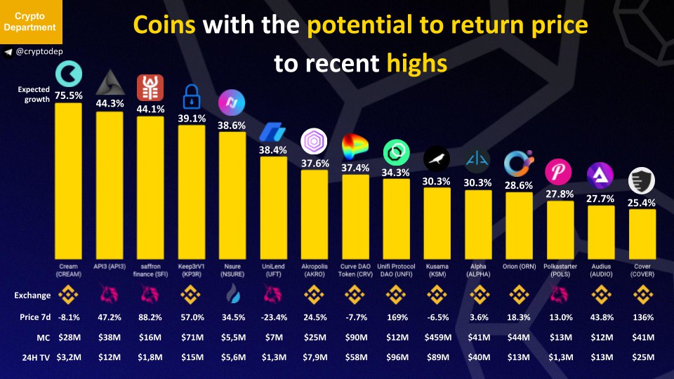 Ниже вашему вниманию представлены монеты с потенциалом возврата цены к недавним максимумам🔥⤵️