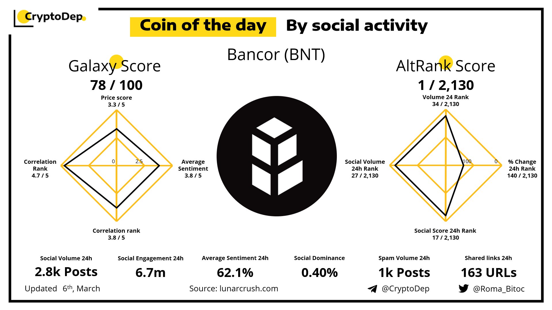 Коин дня по социальной активности ➡️ Bancor (BNT)