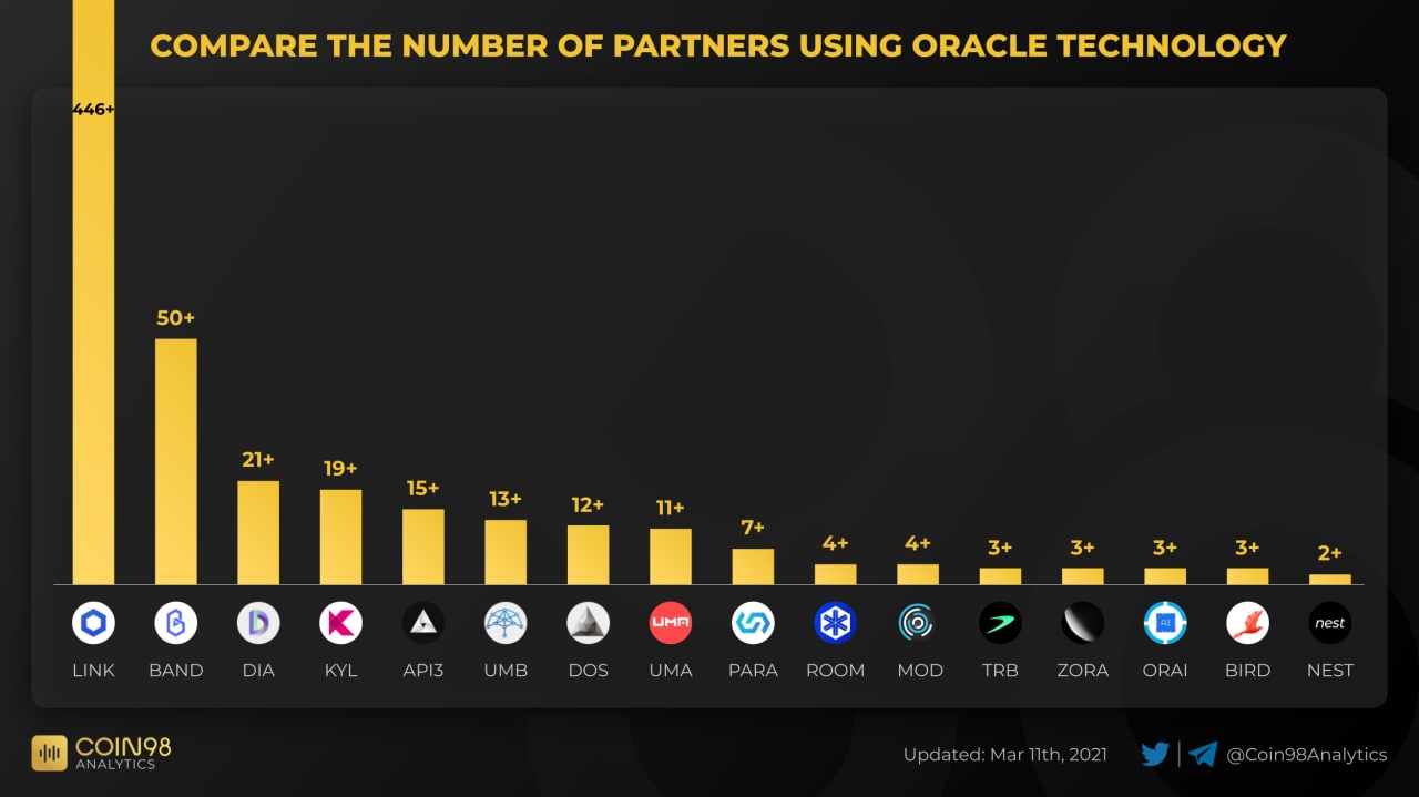 Рейтинг оракулов по количеству партнёров, Chainlink вне конкуренции🦾