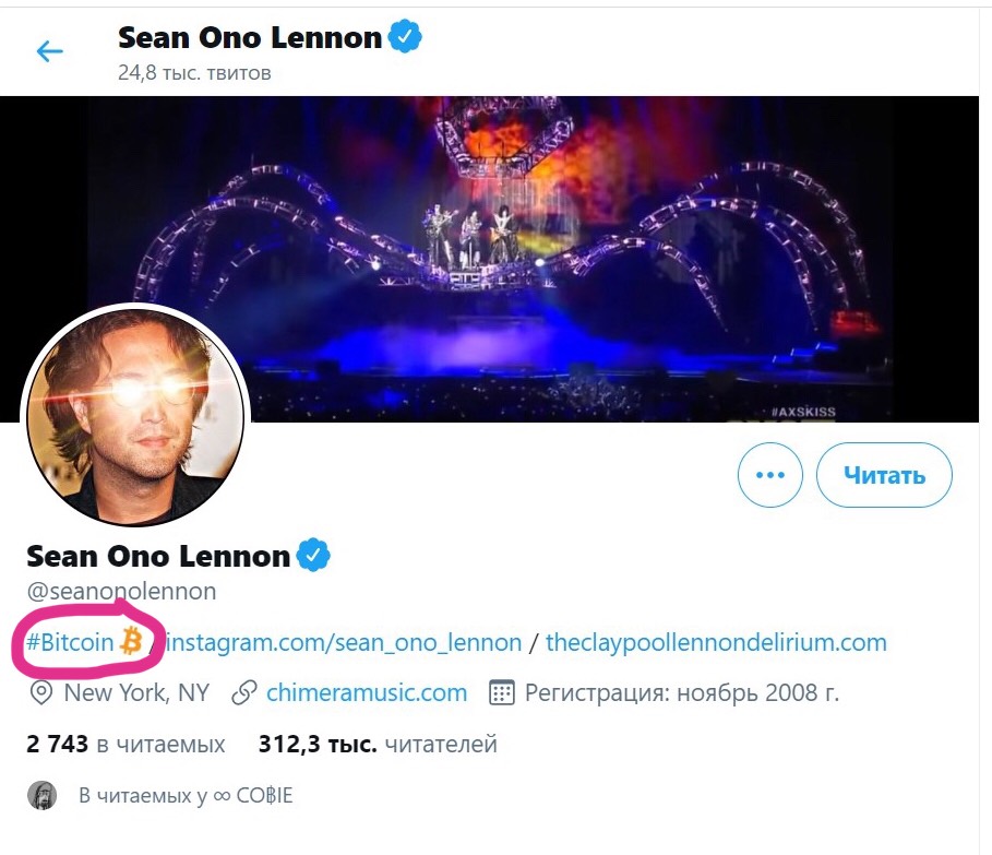 Сын Джона Леннона также установил слово «Биткоин» в своём Твиттер профиле. Хайп нарастает - рост неизбежен🔝