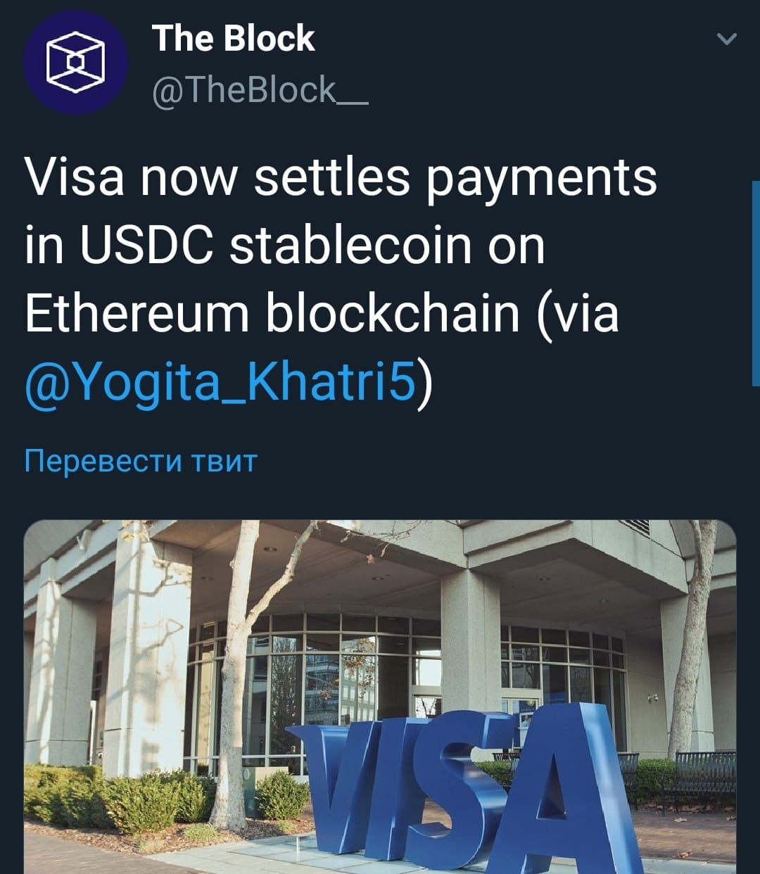Глава по продуктам Visa Джек Форестелл заявил, что решение добавить поддержку USDC является реакцией на высокий спрос среди криптовалютных компаний.