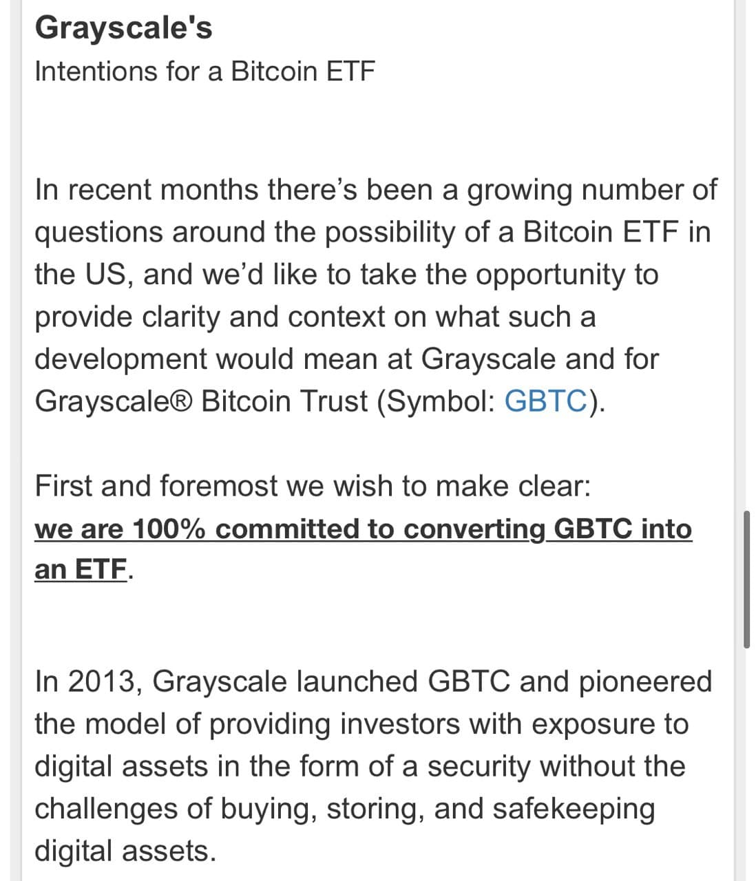 Grayscale планирует преобразовать свой биткоин траст (GBTC) в Bitcoin ETF.