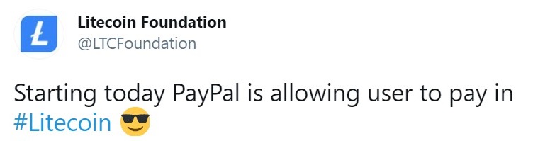 Начиная с сегодняшнего дня пользователям #PayPal позволено платить в #Litecoin