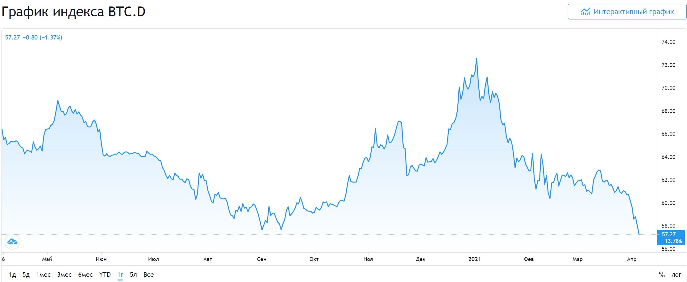 Главным двигателем роста рынка стал Ethereum, который 3 апреля обновил максимум на уровне выше $2140. Капитализация актива достигла $245 млрд.