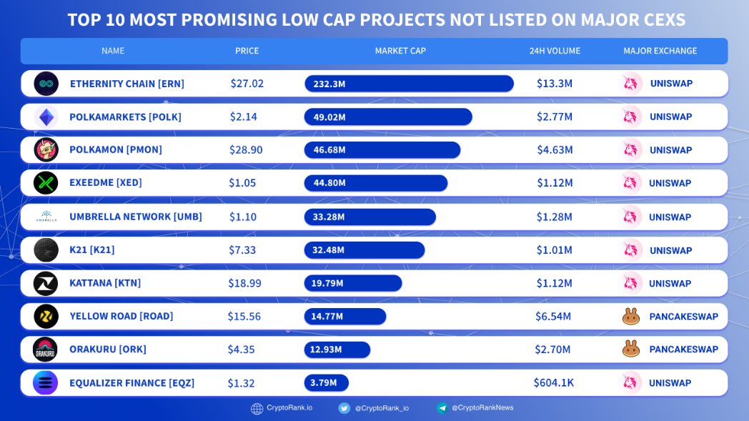 Топ 10 самых многообещающих проектов с пока ещё низкой капитализацией, которые ещё не залистились на крупных биржах🔜