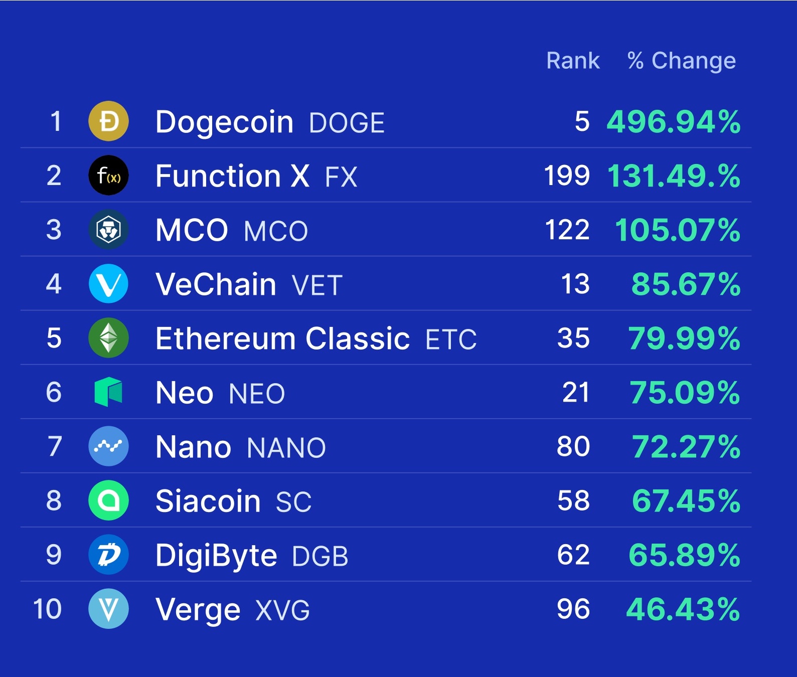 Топ 10 монет, показавших наибольший рост за неделю🔝