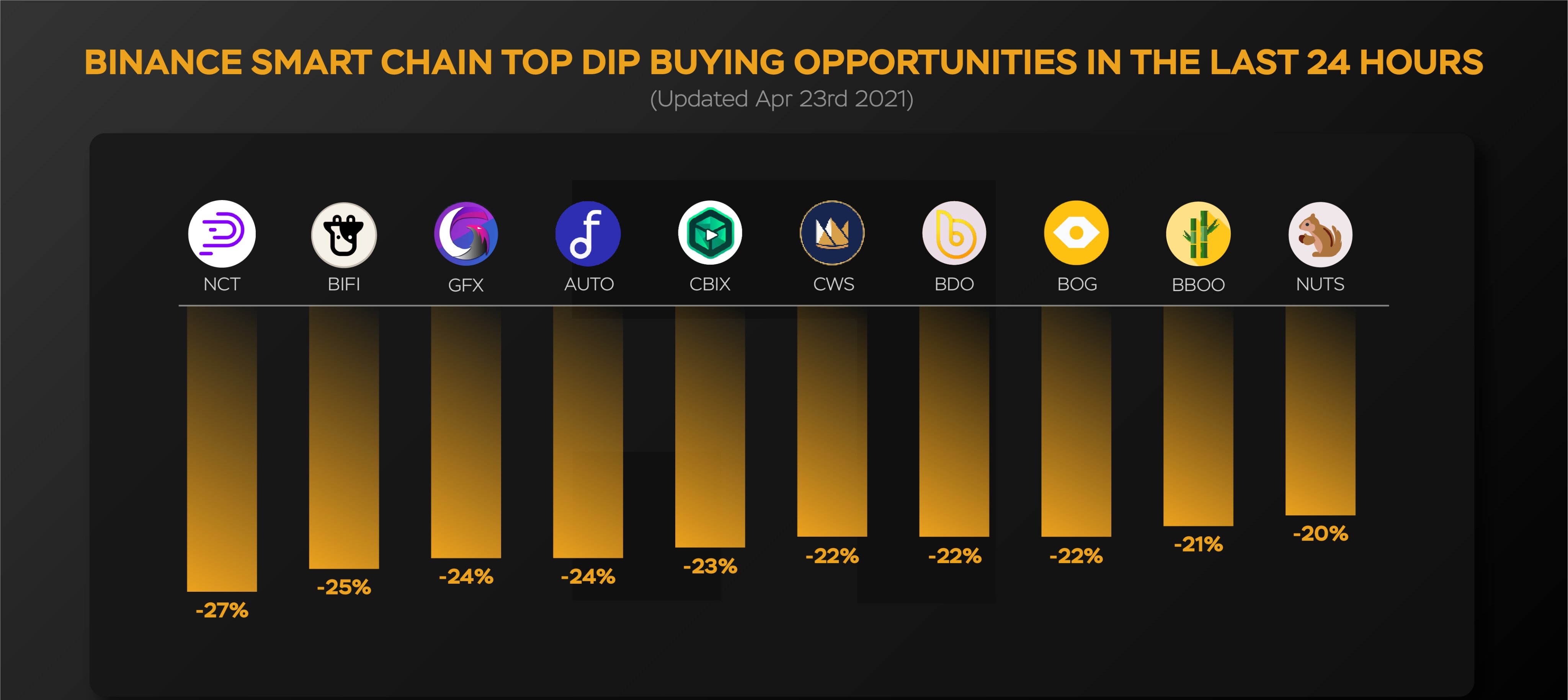 Лучшие возможности покупки монет из сети #Binancesmartchain которые просели за последние сутки📉