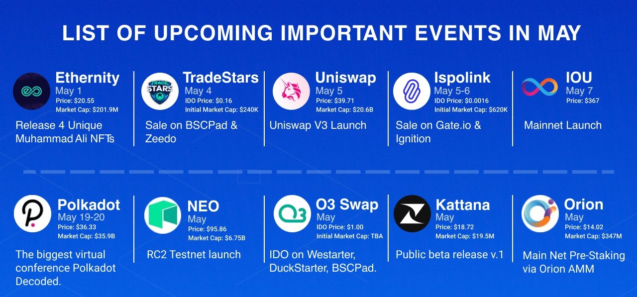 Крипто бро подготовил для вас подборку предстоящих событий мая, это важные технические разработки и публичные продажи токенов💁🏼♂️