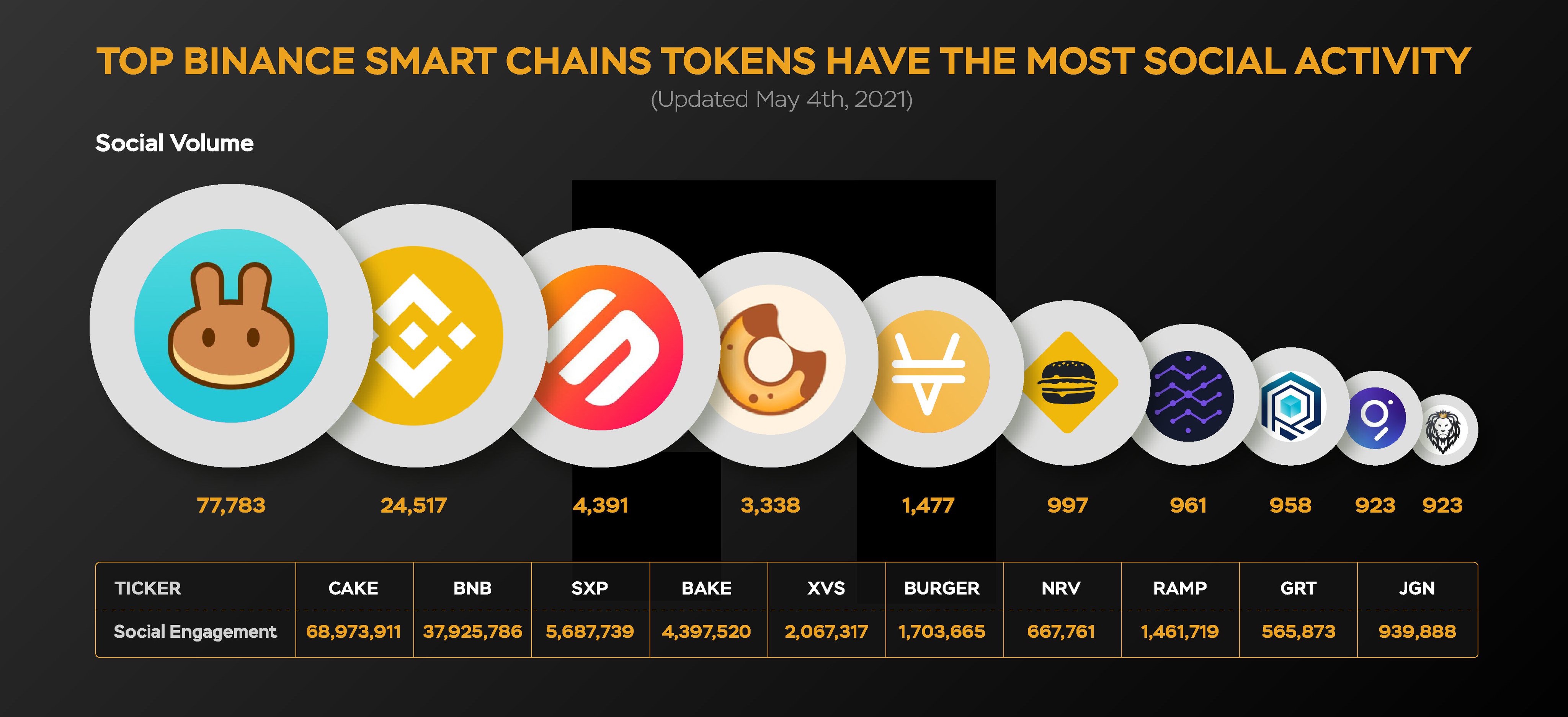 Токены, пользующиеся самым большим социальным откликом из сети #Binancesmartchain за последние 7 дней🗣