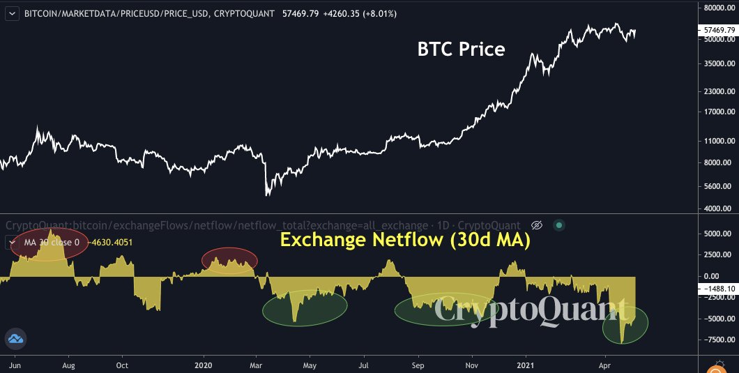 На графике виден массивный отток биткоина с криптовалютных бирж, это ослабило давление продавцов. Аналогичная ситуация складывается и на графике #Ethereum.