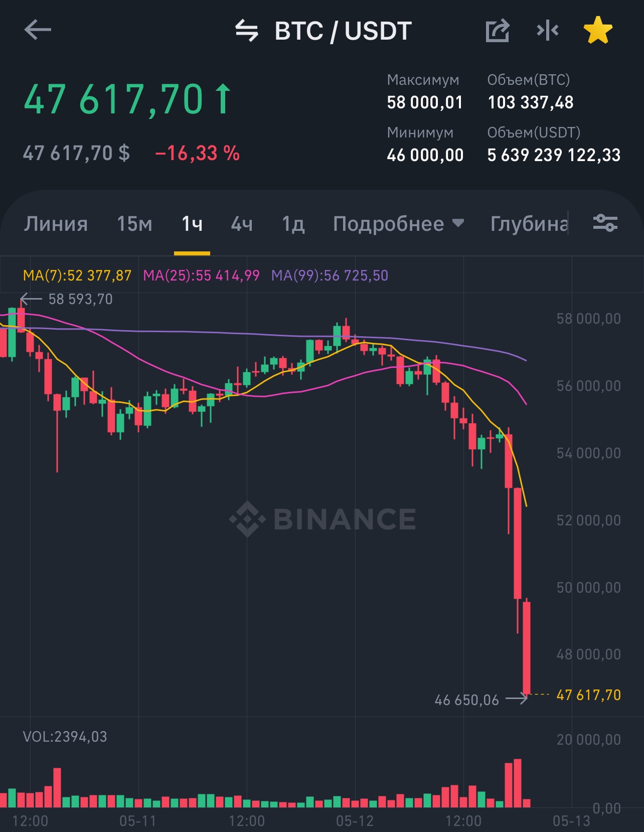 Один из криптоаналитиков заметил в Twitter, что держателей биткоинов крайне опечалит информация о распродаже компанией Tesla «оставшейся части биткоин-активов». На это Маск отреагировал словом «Indeed» (в самом деле). Это мгновенно привело к снижению курса криптовалюты на 10%, до $42,7 тысячи. Затем Маск написал: «Чтобы прояснить слухи, Tesla не продавала биткоины». Падение замедлилось до 9%, а затем до 7%.