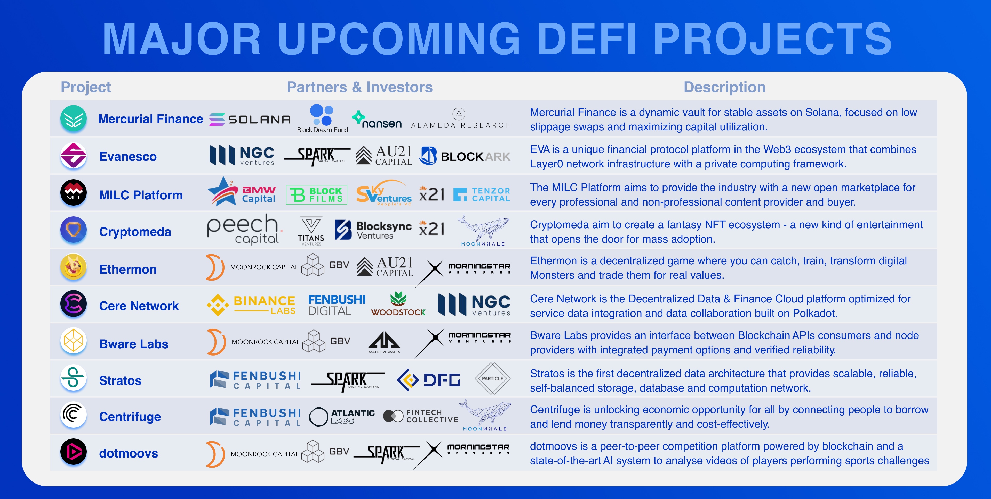 У большинства предстоящих проектов довольно внушительные партнеры, рекомендую выбрать наиболее перспективные идеи и отслеживать. Думаю игра Ethermon точно выстрелит🚀