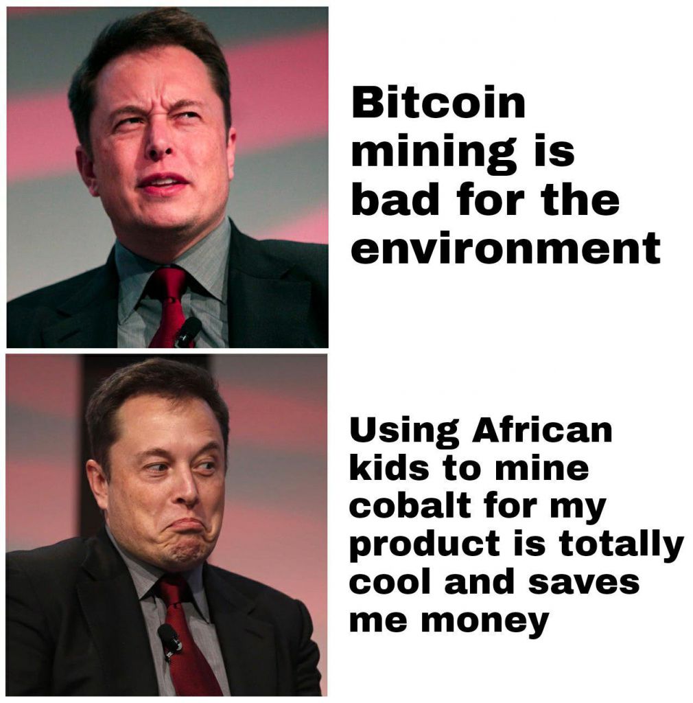 Tesla приостановила покупку автомобилей за биткоин. Мы обеспокоены быстро растущим использованием ископаемых видов топлива для добычи биткоина и транзакций, особенно угля, который имеет наихудшие выбросы среди всех видов топлива.