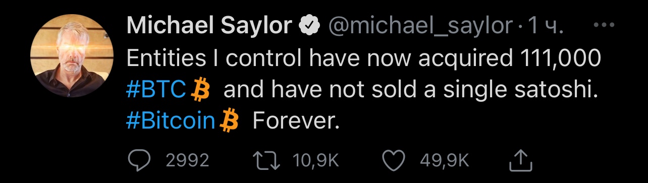 Майкл Сейлор (CEO Microstrategy) держит около 111 000 биткоинов. И он говорит, что не продал ни одного биткоина даже после этого дампа.