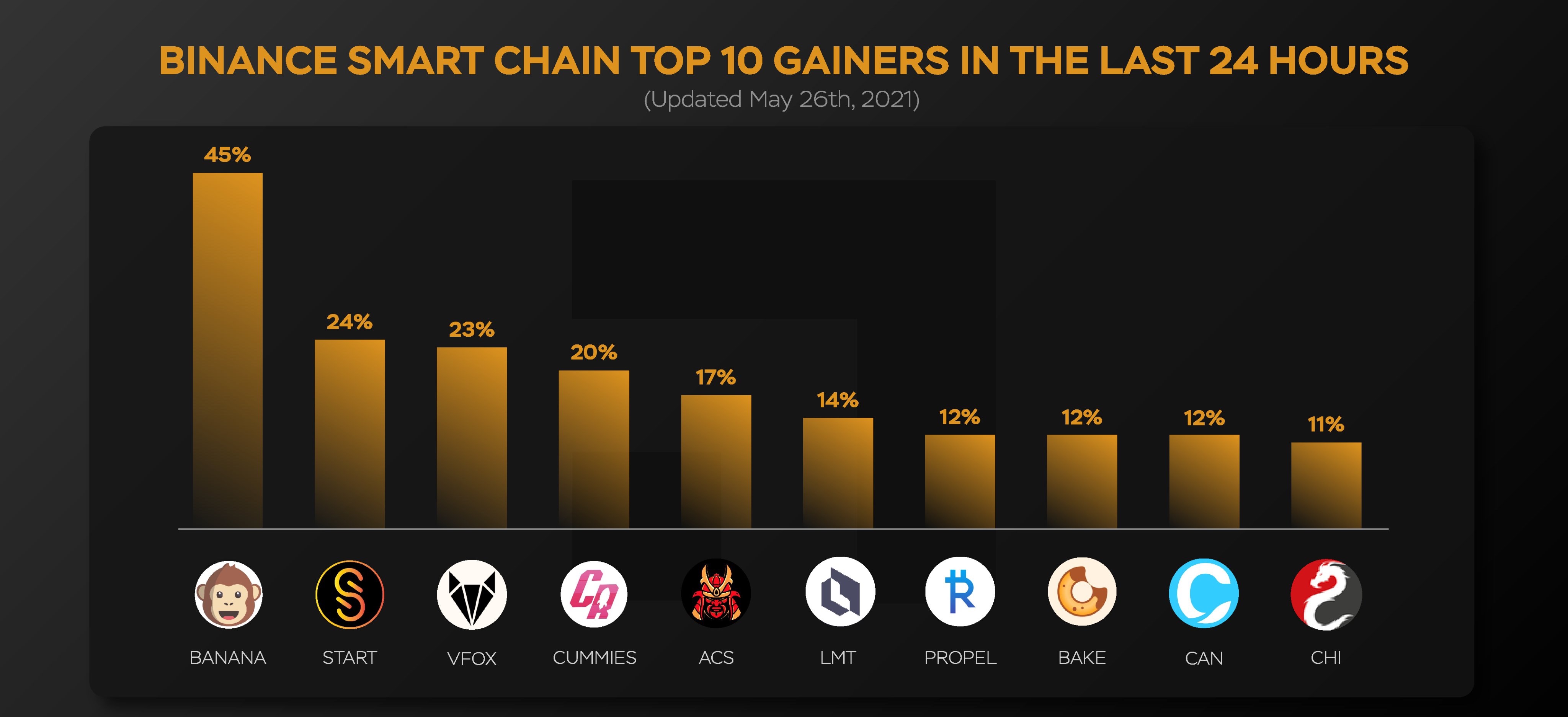 Монеты, которые показали наибольший рост за последние сутки из сети #Binancesmartchain 🚀