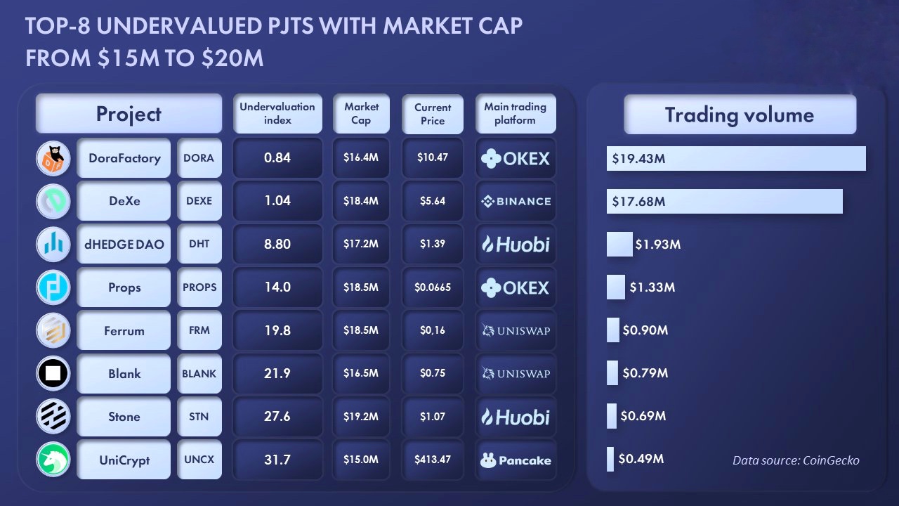ТОП 8 проектов по индексу недооцененности (UI) с капитализацией между $15-20 млн.☝🏼