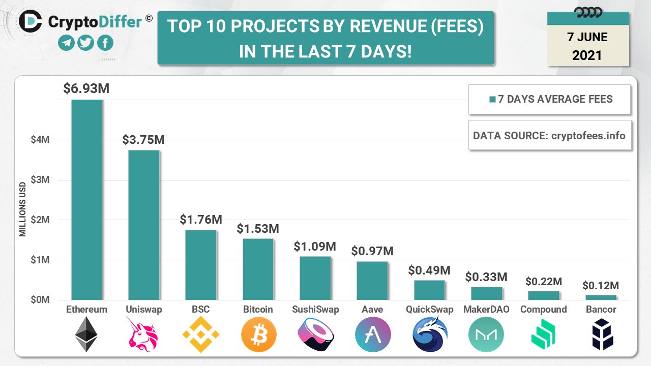 Топ 10 проектов по размеру оплаченных внутри сети комиссий💸