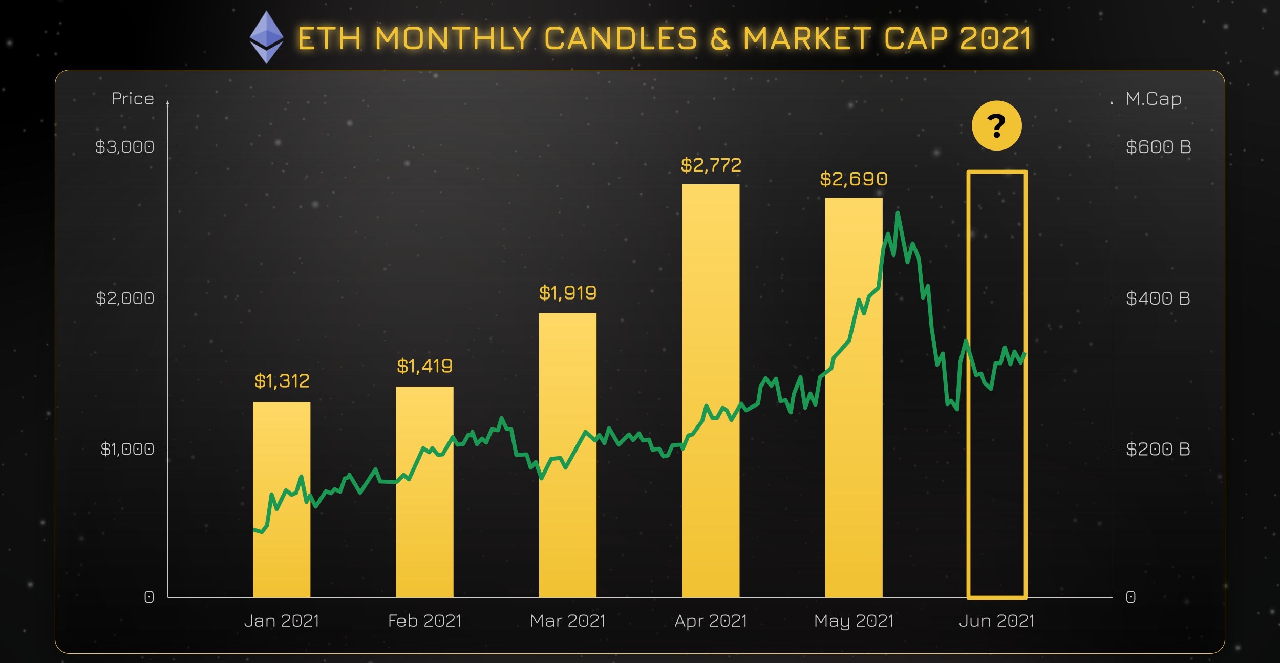 Размер месячных свечей #Ethereum с начала года🕯