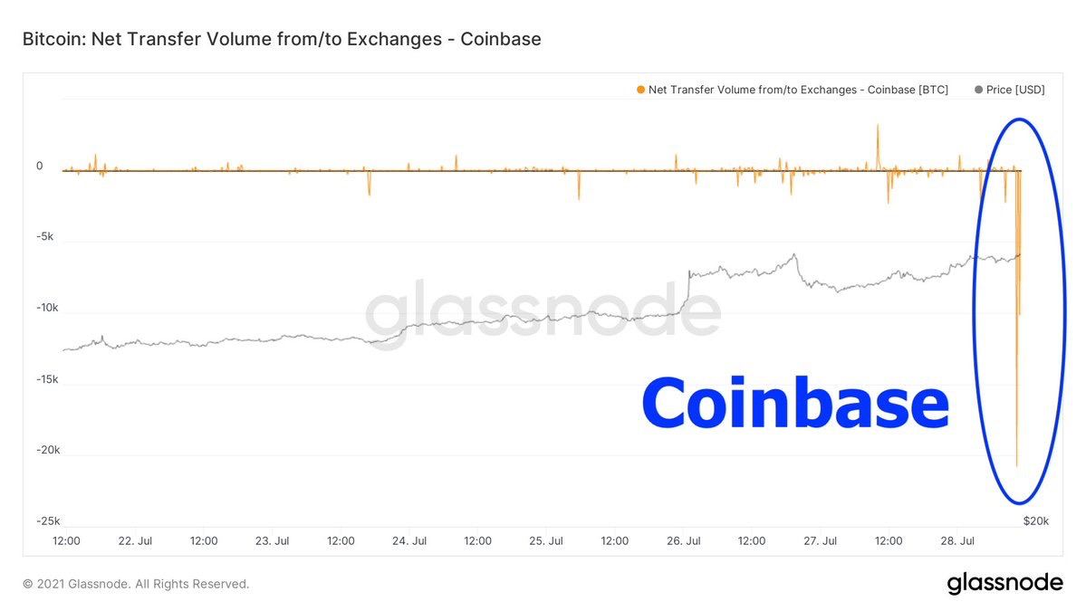 Пару часов назад с Coinbase вывели 88 тысяч битков. Продолжается массивный отток биткоина с кошельков бирж.