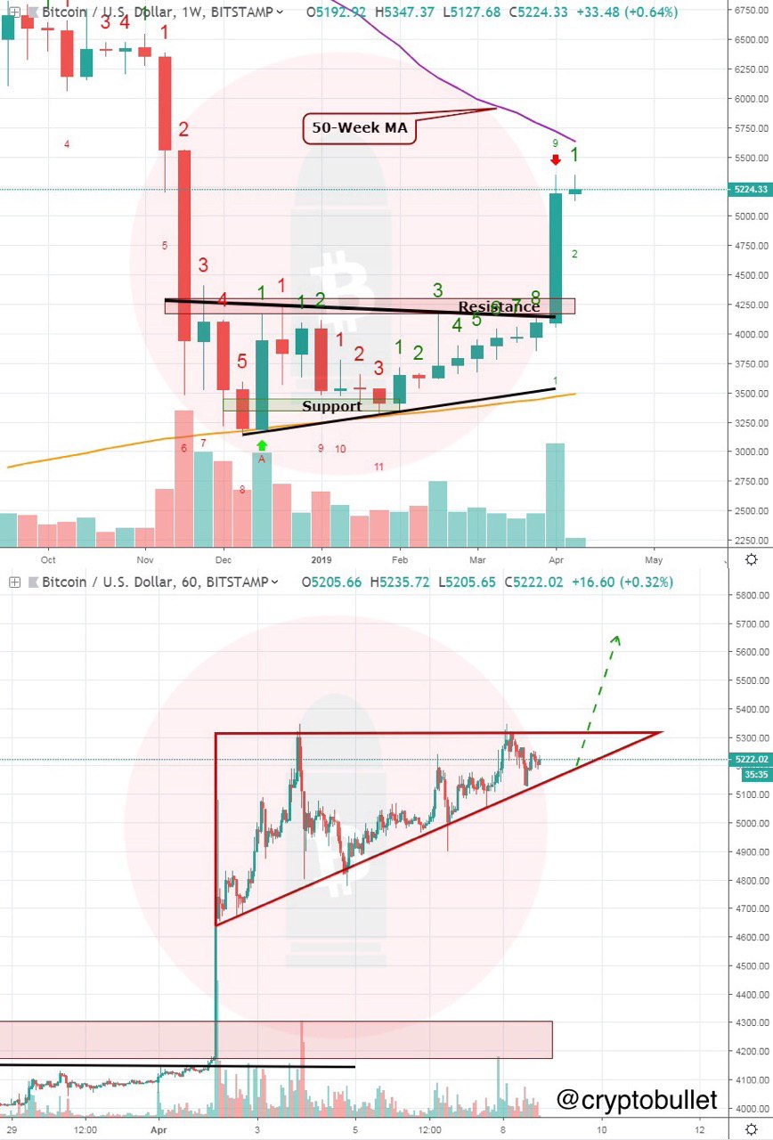 We admit that bulls are very present. Ascending triangle on 1D time frame, and it's more clear on the 4h. We’ve hung around the 5350 zone for way too long similarly to the way we had hung around 4k before we saw that $1k jump.