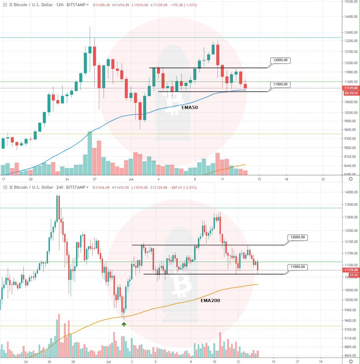 👉Look how beautifully EMA200 is holding the price once again. Yesterday we mentioned that once we go below 11k, target is 9k zone but the only if is EMA200. Watch if it bounces the price or not. If it does, we can make it back to the breakdown level (11k).