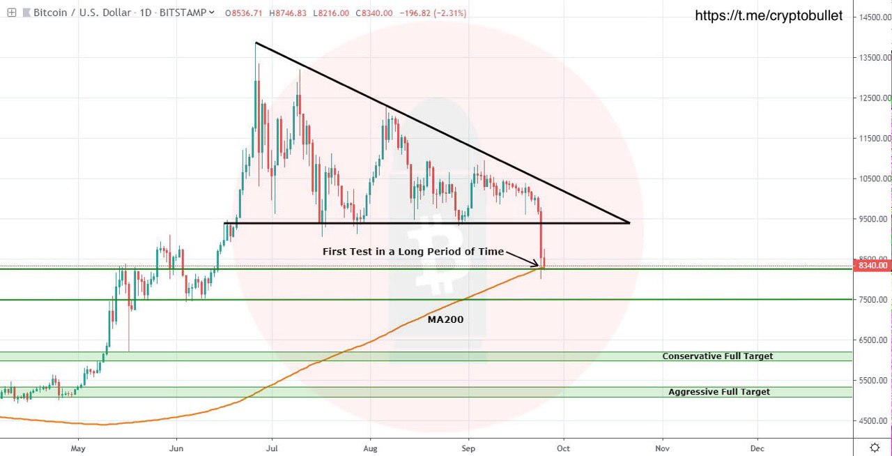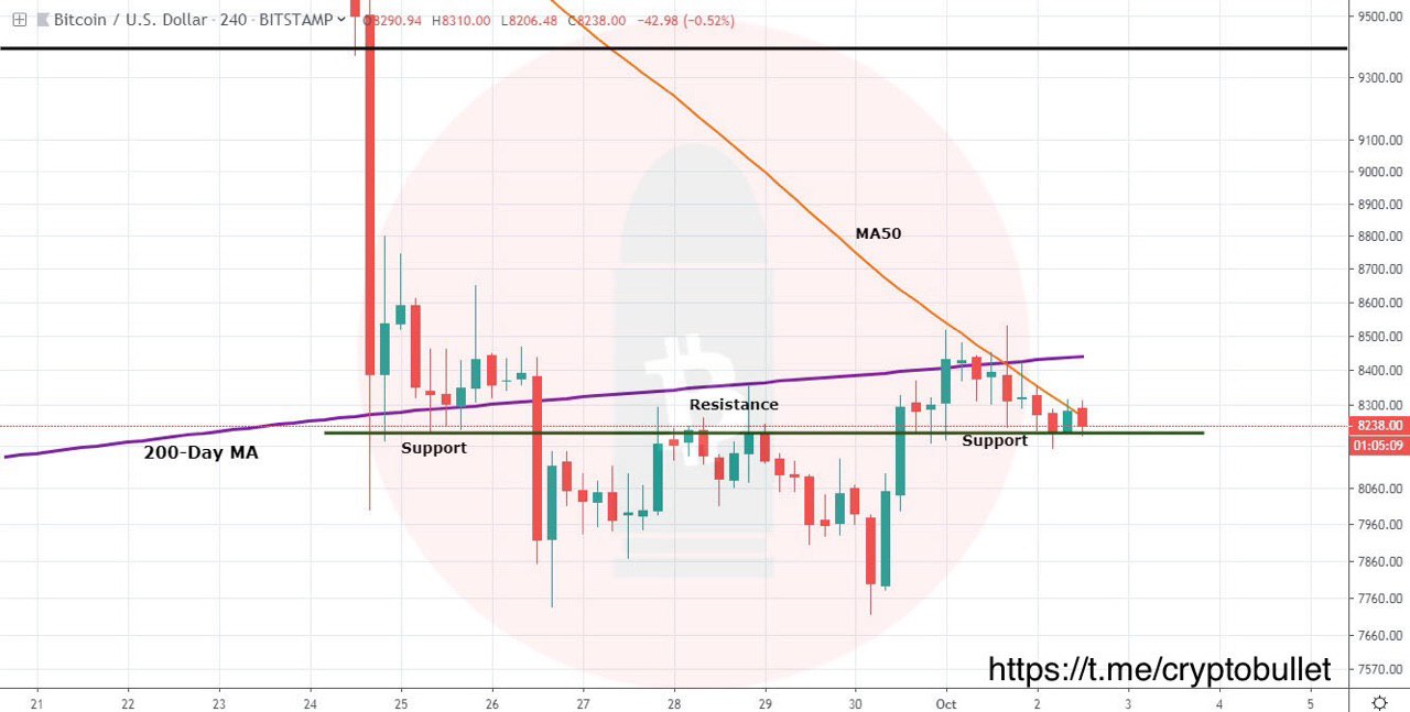 Also pay attention to the 200-Day MA. It is key for the bulls. We really need to break above it to continue going up. Next major resistance to look for is around 9k.