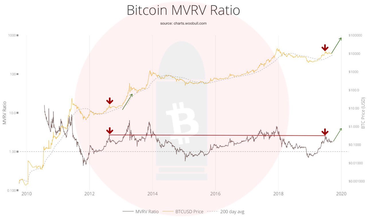💡The current bull run looks more like 2012-2013 not only by its price action, but also by MVRV ratio. Although the level of MVRV is not unusual, we never saw a rise this big since 2013! In August 2012 MVRV moved up to the level where we are today and then another parabolic move happened.