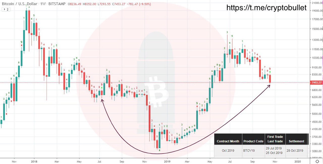 ⚠️ Here is something to pay attention to - this weekly candle is a TD-9 buy. We haven't seen it since Jul. 9 of 2018. Back then Bitcoin rallied up by 40% just in 2 weeks!