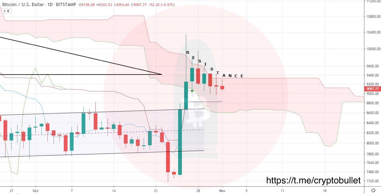 So, we did find support at EMA200 once we broke below MA200 like we expected. Now we see that EMA200 is being tested for the second time since that crazy pump elevated us above it on Oct. 25th. The fact that we retest the support for the second time in such a short period of time is not good. Next support - point of control on VPVR at ~8300.