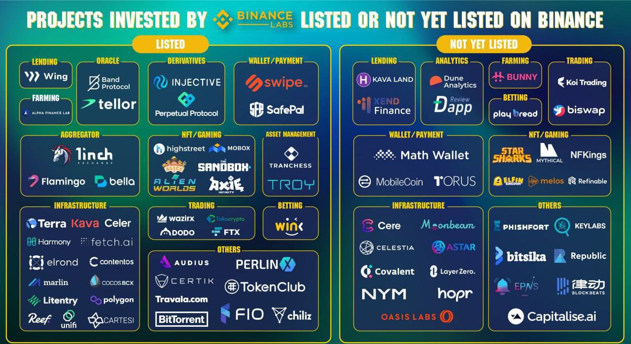 🚀Свежая подборка проектов в которые инвестировал венчурный фонд Binance Labs