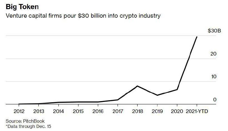 🚀 В 2021 году криптоиндустрия привлекла рекордные $30 млрд инвестиций от венчурных фондов.