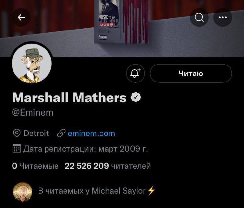 Eminem приобрел NFT-обезьяну (Bored Ape Yacht Club) за $462 000 и сразу сделал его своей аватаркой в Twitter.