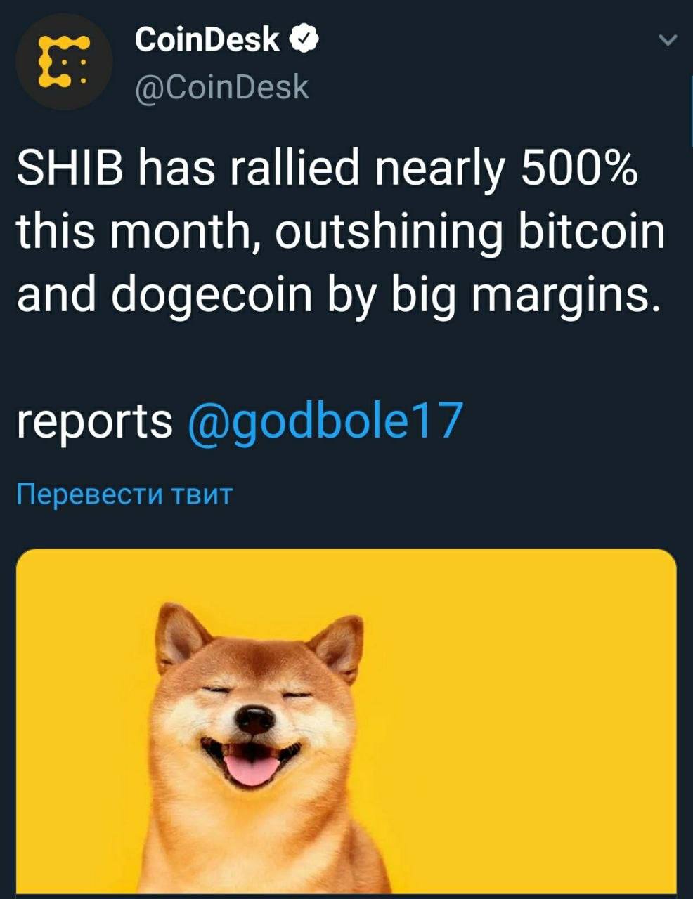 📈В этом месяце #SHIB вырос почти на 500 %, превзойдя биткойн и dogecoin.