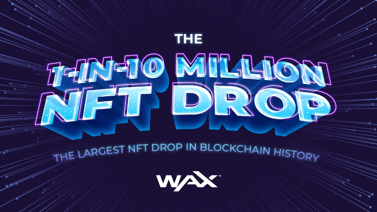 WAX празднует рекордные 10 миллионов учетных записей WAX Blockchain и пообещал сбросить 10 видов NFT, насколько я понял рандомно. Ктото из нас сможет получить.