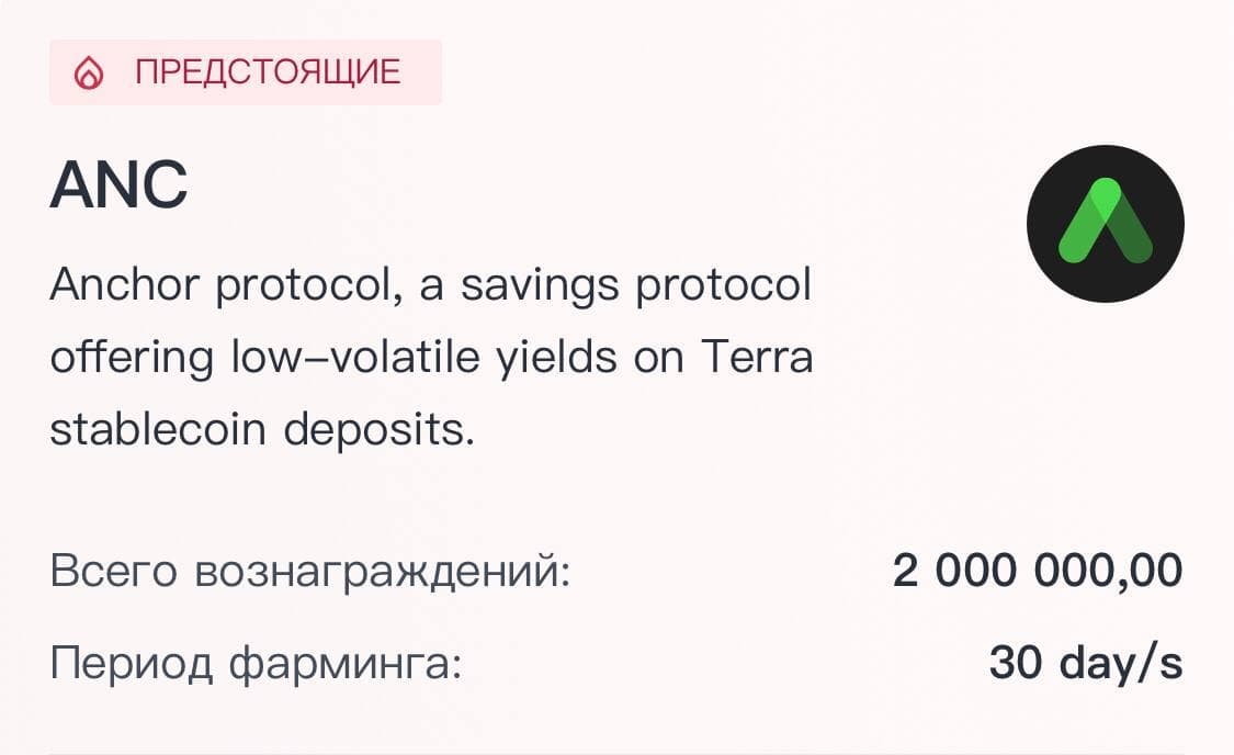 🔥Биржа Binance представила новый проект на Binance Launchpool — Anchor Protocol (ANC).