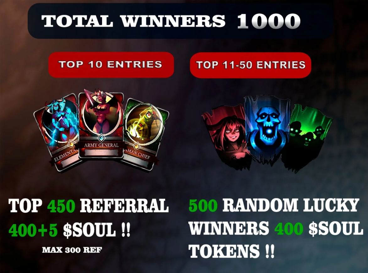 Всего будет 1000 победителей, разыграют NFT карчточки и токены SOUL