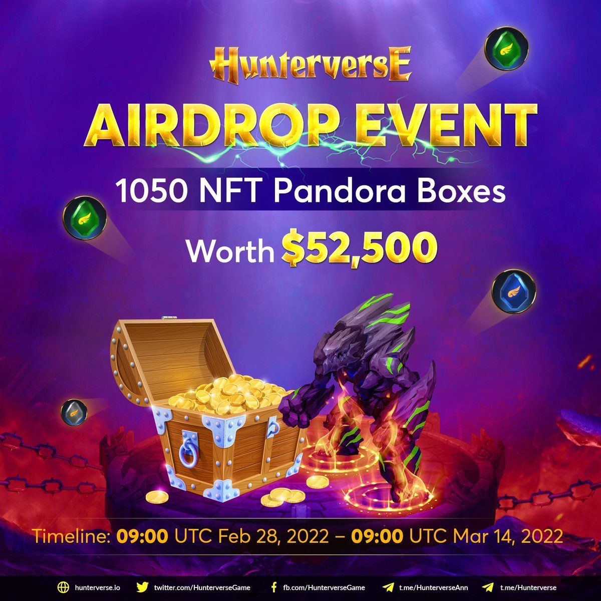 1000 человек рандомно и топ 50 по рефам получат 1 NFT Pandora Box