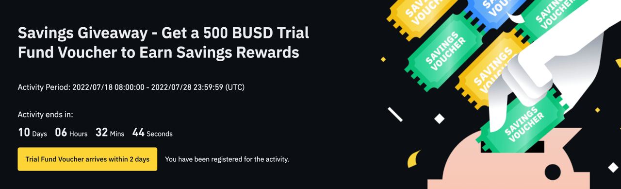 Binance Savings объявляет о розыгрыше, в рамках которого новые пользователи Binance Savings могут начать зарабатывать проценты, используя ваучер пробного фонда Savings на 500 BUSD.