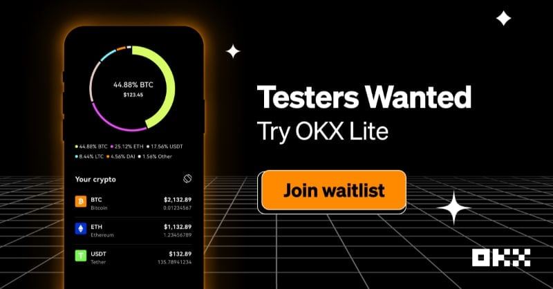 Мы разрабатываем новое приложение, чтобы начать работу с криптографией стало проще, чем когда-либо. Получите ранний доступ к OKX Lite и помогите нам создать лучшую версию. Также для ранних тестеров обещают бонусы и подарки.