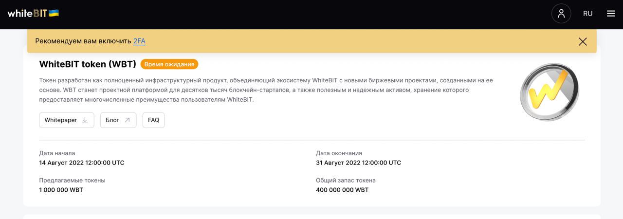 Украинская криптобиржа WhiteBIT выпускают собственный токен, в покупке которого мы можем принять участие.