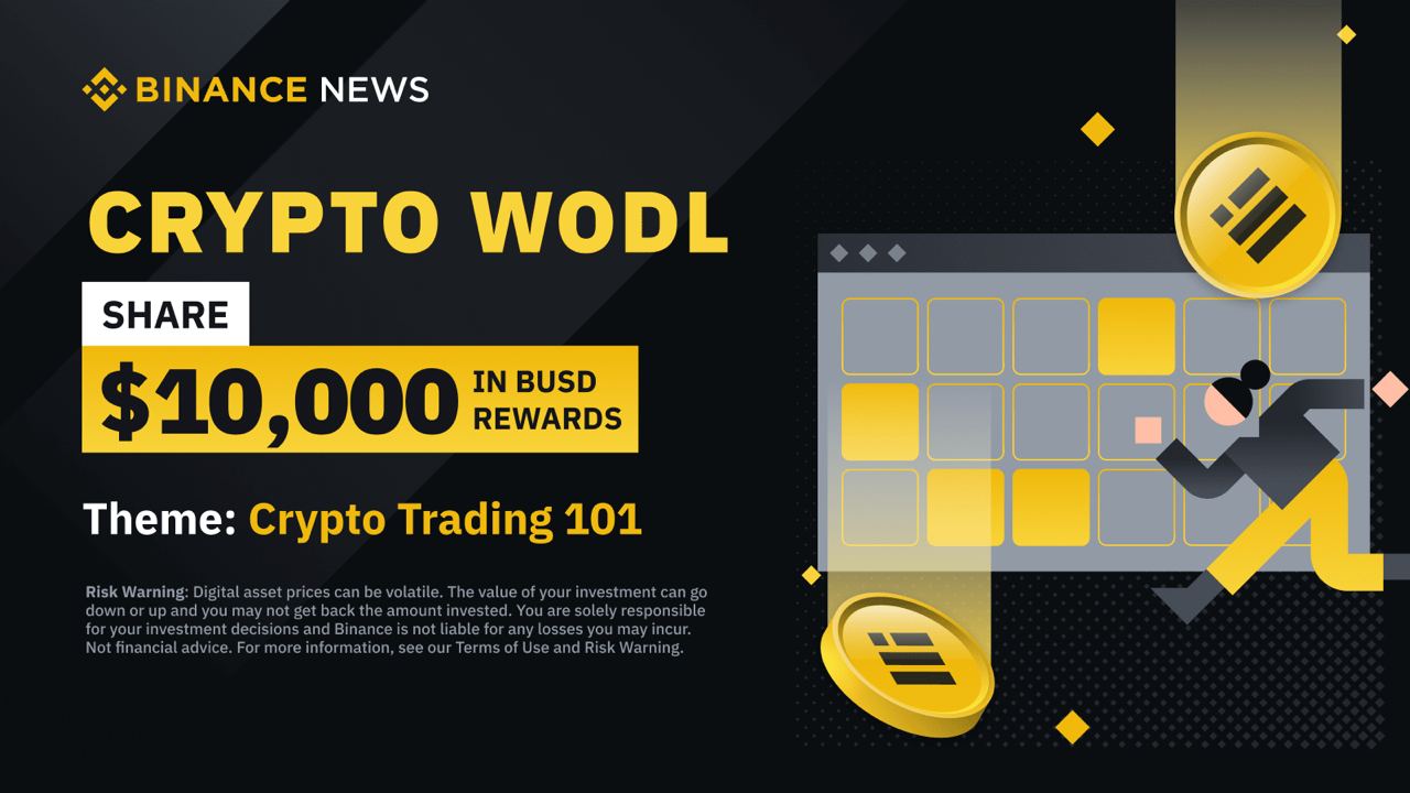 Тема WОDL на этой неделе — Crypto Trading 101. Всё как и в прошлые разы - отвечаем правильно 5 раз и получаем долю от призового фонда 10000 BUSD.