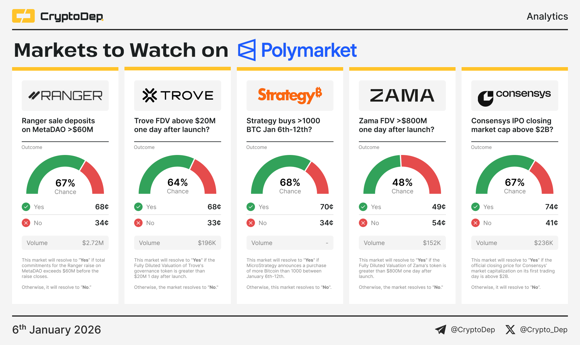 Several major token launches are lined up for 2026, including Polymarket, OpenSea, MegaETH, MetaMask, Tempo, and OneFootball Club. As some assets begin pre-market trading and others move toward token launches, market is increasingly clustering around these projects.
