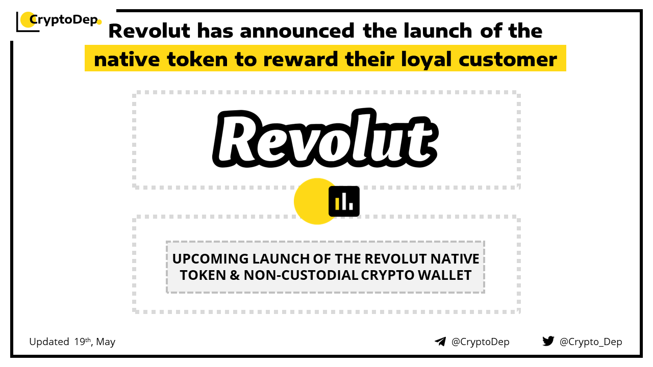Revolut to launch its native crypto token to reward customers for their loyalty along with Revolut’s non-custodial crypto wallet on the Ethereum network, with a long-term aim for a multi-chain wallet. Revcoin will function in a similar way to airline Air Miles programs, where users earn rewards based on how often they use the service.