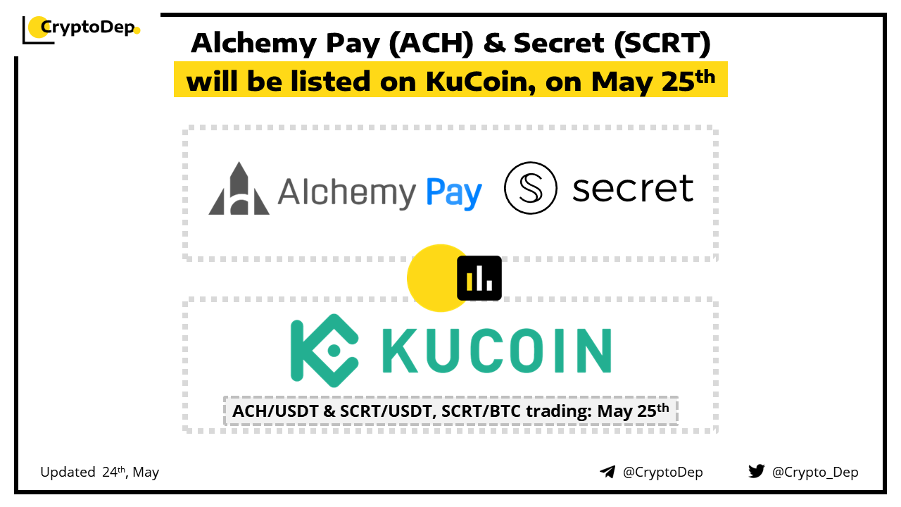 Alchemy Pay (ACH) & Secret (SCRT) will be listed on KuCoin tomorrow, on May 25th