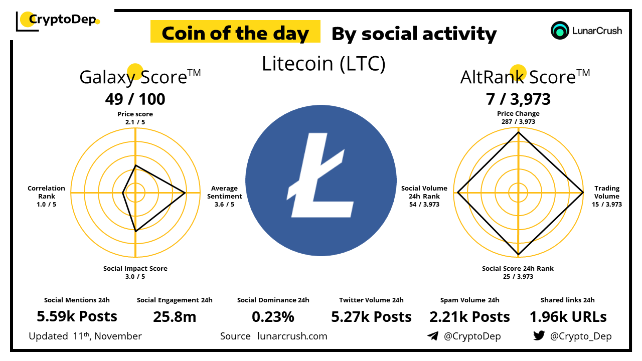 Coin of the day by social activity - Litecoin (LTC).