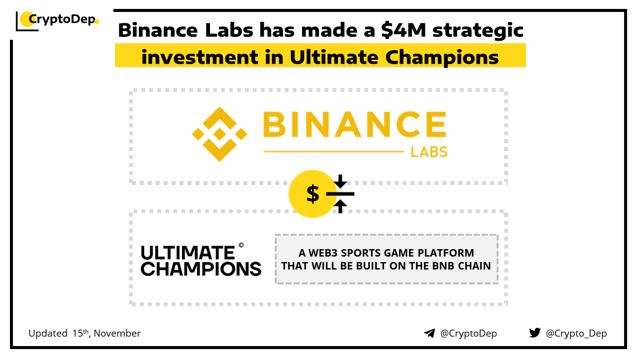 Binance Labs has made a $4M strategic investment in Ultimate Champions