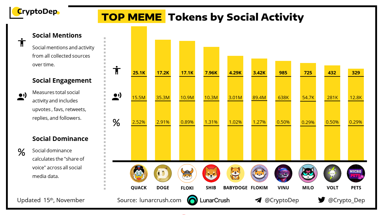 Social Engagement measures total social activity and includes upvotes, favs,retweets, replies, and followers.